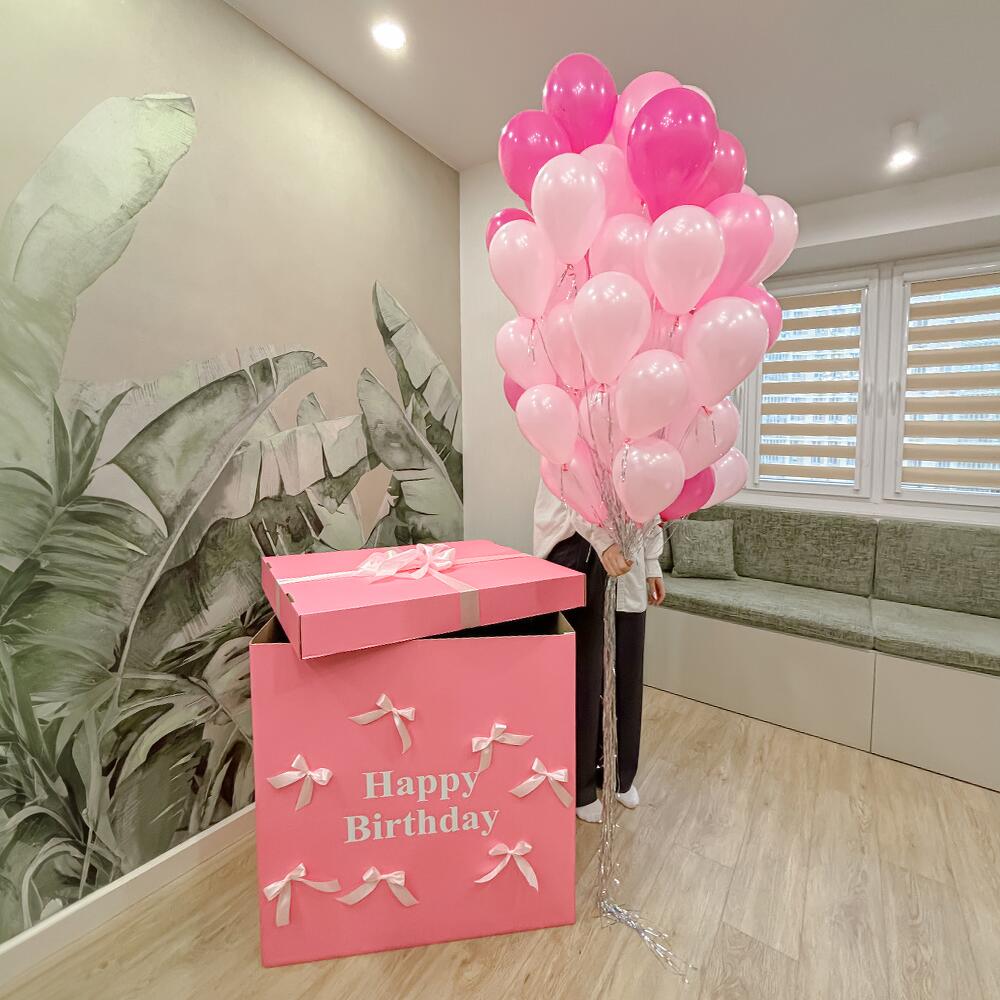 Добавляйте товар в подборки ♥️, чтобы не потерять. Коробка-сюрприз это ярко, неожиданно, незабываемо. Коробка с шариками обязательно произведет WOW-эффект, создаст атмосферу радости и подарит незабываемые эмоции, в момент её открытия. Сроки полета: 💬 Пожалуйста, обратите внимание — полет таких маленьких шариков, из-за своих размеров, составляет 12 часов с момента получения заказа. Если для Вас важен длительный полёт шаров (от 48 часов) просьба выбрать другую композицию на сайте, либо попросите помочь с выбором наших менеджеров. Будем рады помочь! В составе: Мини-шарики: — розовые шары — 25шт Розовая коробка с бантиками + Ваша надпись. Шары на День Рождения и не только! Воздушный шар — это неотъемлемая часть любого праздника и отличная идея для подарка без повода. Шары в коробке обязательно произведут на получателя ВАУ-эффект и создадут праздничное настроение с первых секунд. Это подарок, который дарит не только красоту, но и эмоции. ✔️ Доставка шаров осуществляется в транспортировочном пакете. Бережно упакуем Ваш заказ, чтобы он доехал в целости и сохранности. ✔️ Доставляем для Вас исключительно качественный и сертифицированный товар, сотрудничаем только с проверенными производителями: Sempertex, Belbal, Qualatex, Everts, Agura, Flexmetal, CTI.
