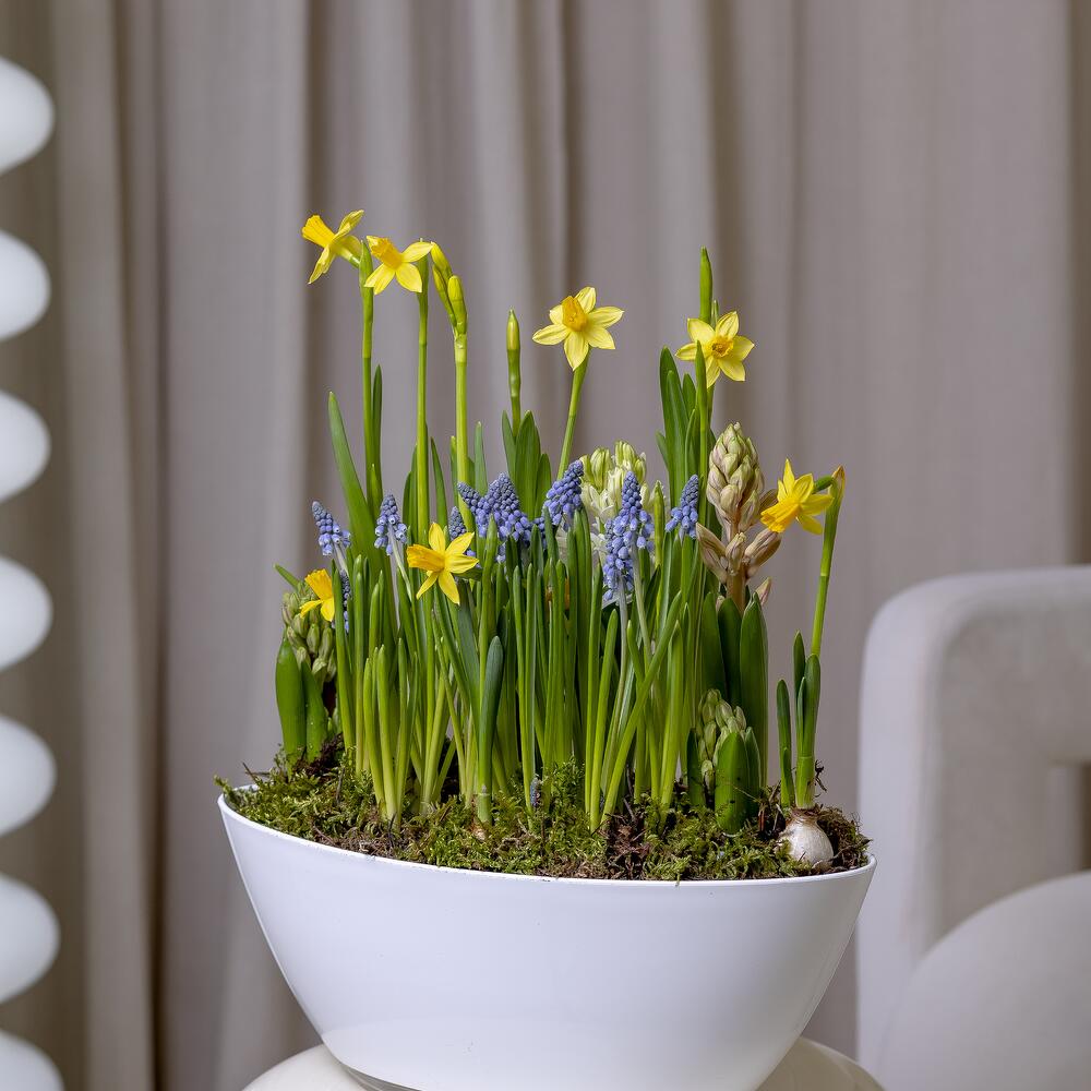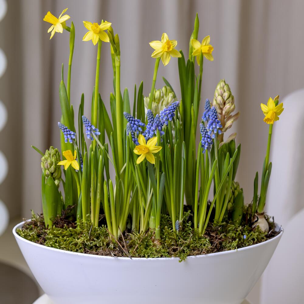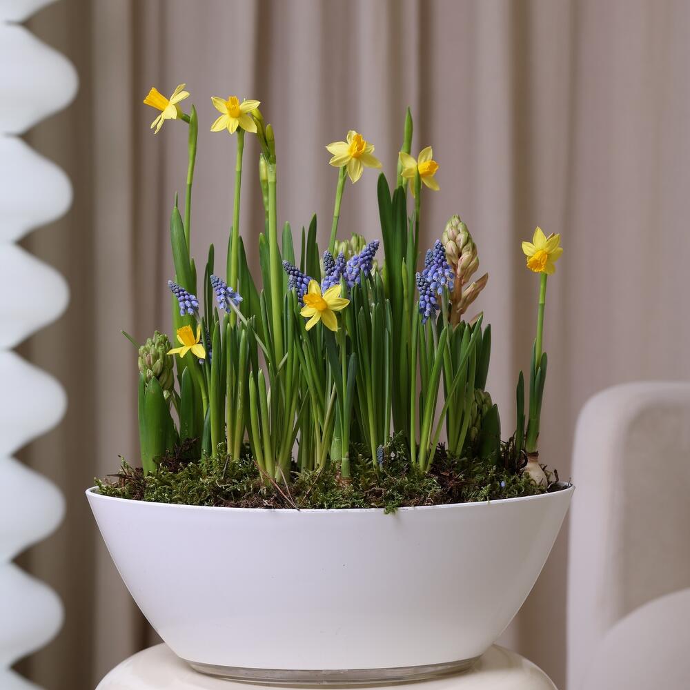 — Расположить композицию вдали от отопительных приборов — Полив умеренный, 2 раза в неделю — После того, как растения отцветут и полностью увянут, необходимо срезать всю зелень, вытащить луковицы из грунта и просушить. Хранить луковицы в тёмном и прохладном месте до конца лета, а после высадить в горшок или открытый грунт.